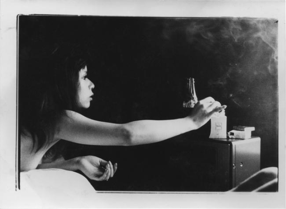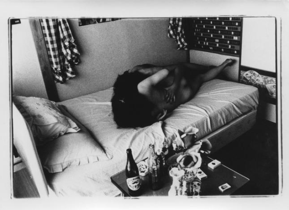 I found a cabinet sized box labeled ‘Theater of Love’. I opened it to find about 150 prints. It’s from around ‘65. Back then I used to click away with my Olympus Pen F, making these patchy prints using thermal development on purpose; the woman, the era, and the place are all photographed there, it’s all expressed. So, I used to say ‘Theater of Love’ back then, eh. Well, anyway, it’s good, huh, they are good photos. This sort of thing isn’t going to happen on digital. — Nobuyoshi Araki, December 2010