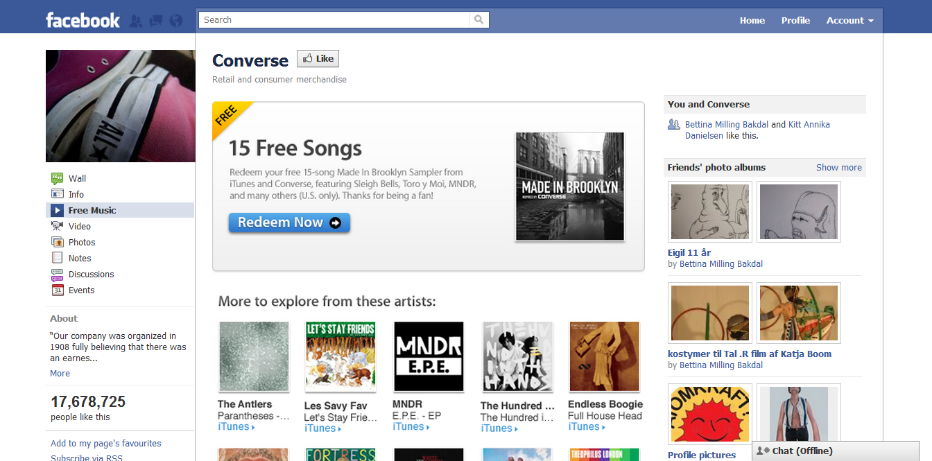 Converse have joined forces with iTunes in a co-branding exercise, where they give away free music and promote emerging artists. You want to Like it. You want to Share it. You want to wear a pair of Converse sneakers.
