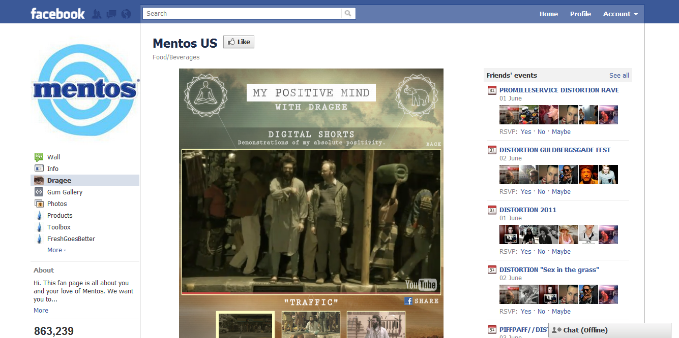 Mentos is showcasing a series of short films, that are very entertaining and “feels good” with the brand. You want to Like them. You want to Share them The videos are not easy to control and share for bloggers, though (due to unnecessary, “hard” embedding).