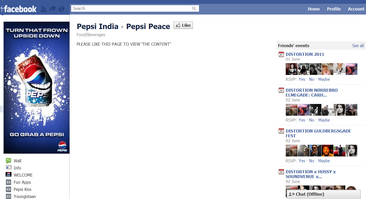 Pepsi in India wants you to Like them before you can view their content. That’s not exclusive content. That’s blackmail!