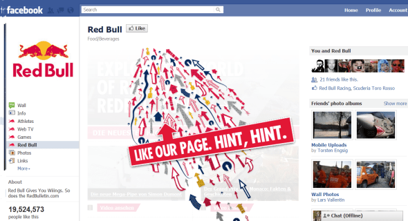 There is no doubt that Red Bull really wants you to Like them. But why? Maybe they should use the frontpage to tell you that instead of just pointing arrows!