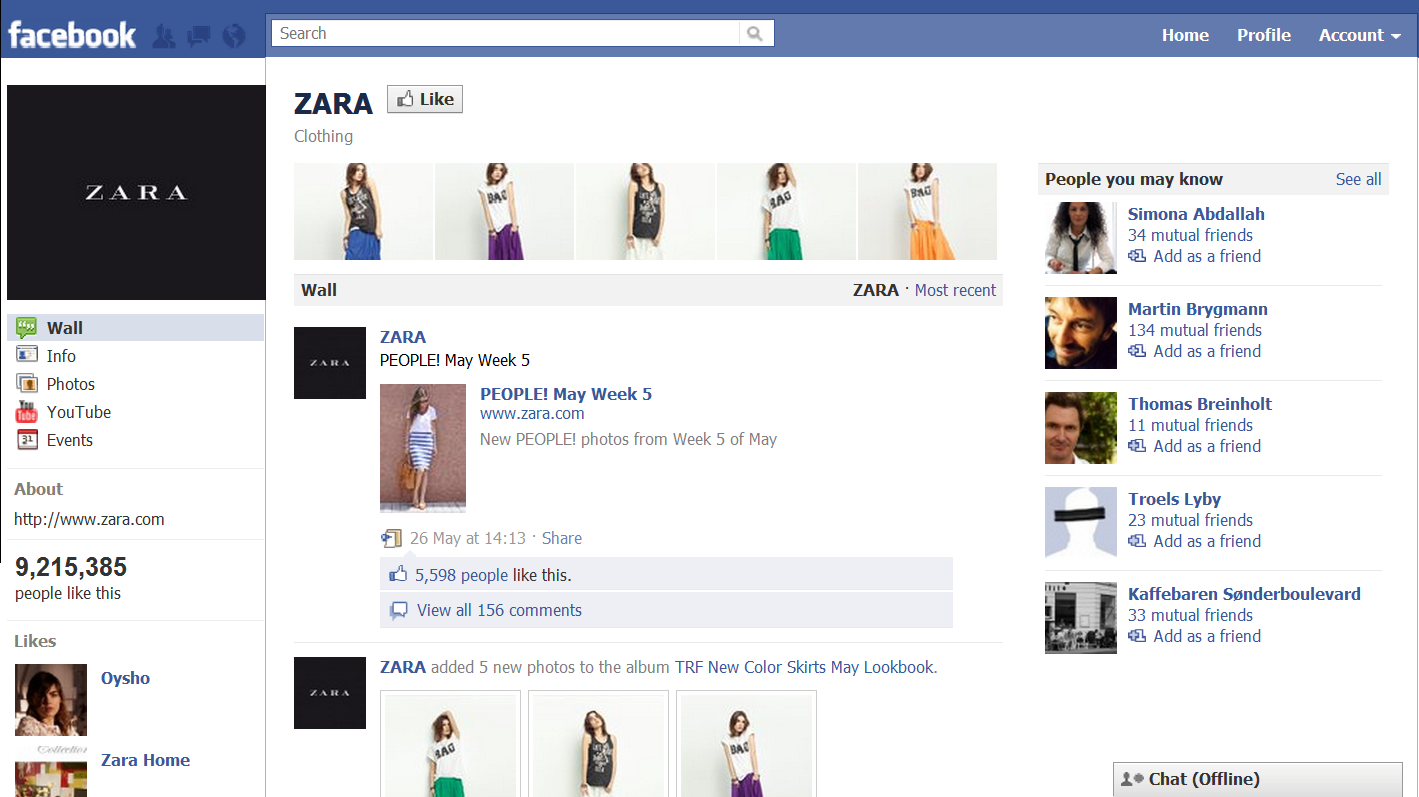 On this screenshot you can see how Zara is keeping their Facebook page very simple with a collection of photos. It’s a no nonsense approach that works very well. At least almost 10 million people (at the time of writing) think so!