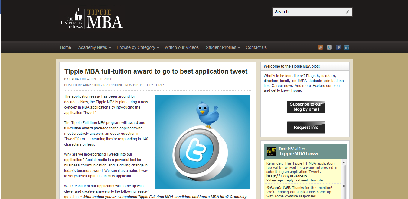 The US universities are surely embracing social media with this offer of getting into an MBA program and the opportunity of a $37,000 scholarship with a tweet!