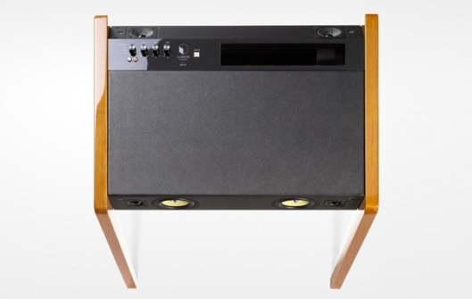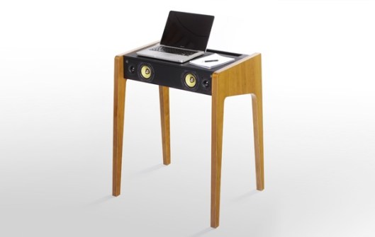 The Laptop Dock LD 130 has been optimized for use as a workstation and has a new finish lacquered natural wood of 30mm thickness “as s guitar,” as well as new speakers developed exclusively for this project. We love it. [Source]