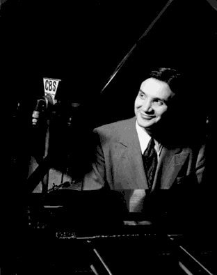 The regular orchestra leader on TV’s 1950 classic live show, Your Hit Parade, was one of the show’s star’s husband! Dorothy Collins was married to Raymond Scott, and appeared on Hit Parade every Saturday night with Gisele MacKenzie, Snooky Lanson, Russell Arms and Ray Charles (singers). Raymond is seen in an April 16, 1955 on camera performance with his quintette performing his composition Powerhouse. Not long after Hit Parade left the airwaves, Dorothy and Raymond were divorced amid rumors that Scott let his perfectionism get in the way of the marriage.