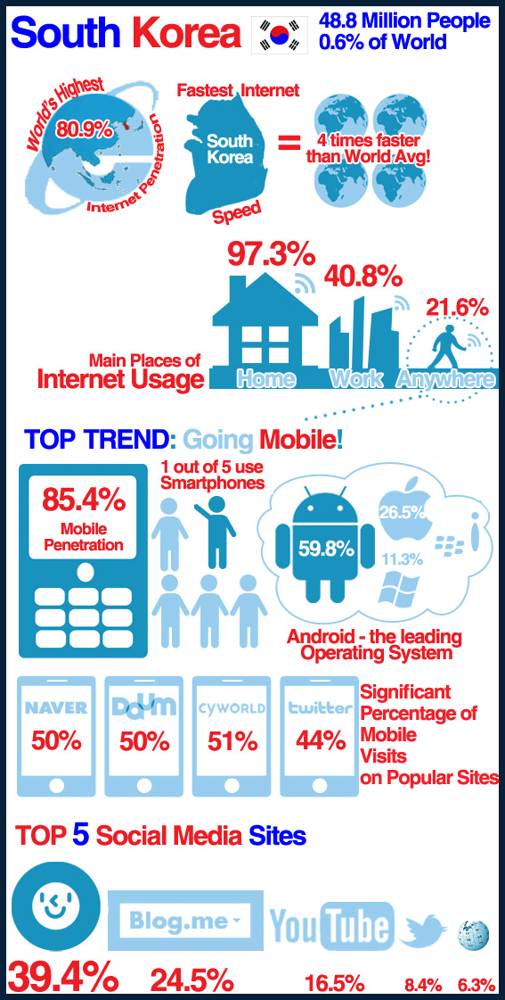 And Koreans love Android and Twitter along with local services like Naver, Daum and Cyworld.