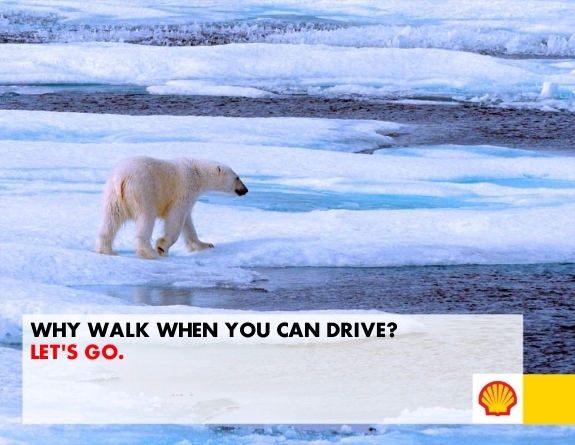 People think that this is a social media campaign from Royal Dutch Shell that backfired. It is actually a part of a very sophisticated action by Greenpeace. They also got arrested dressed as polar bears. This is the fake Twitter account.