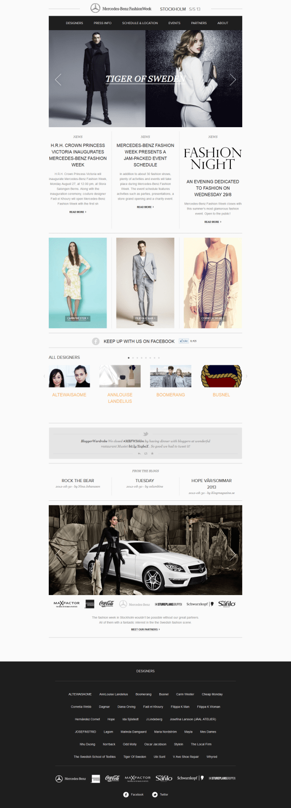 If you absolutely have to have display advertising on your page – instead of brilliant and user friendly sponsored content and discreet and elegant powered by graphics – put them on the bottom of the page, where they belong. You can also put your main sponsor in the actual name and URL: http://www.mercedesbenzfashionweek.se/