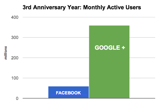On a final note: look at the huge differences in numbers between Facebook and Google Plus at three years old: