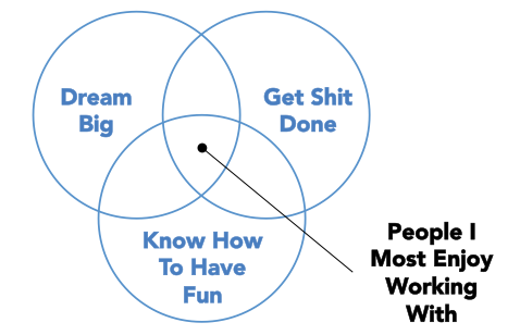 This graphic describes the kind of people I like to have around me. The people I work with are almost all in the center.