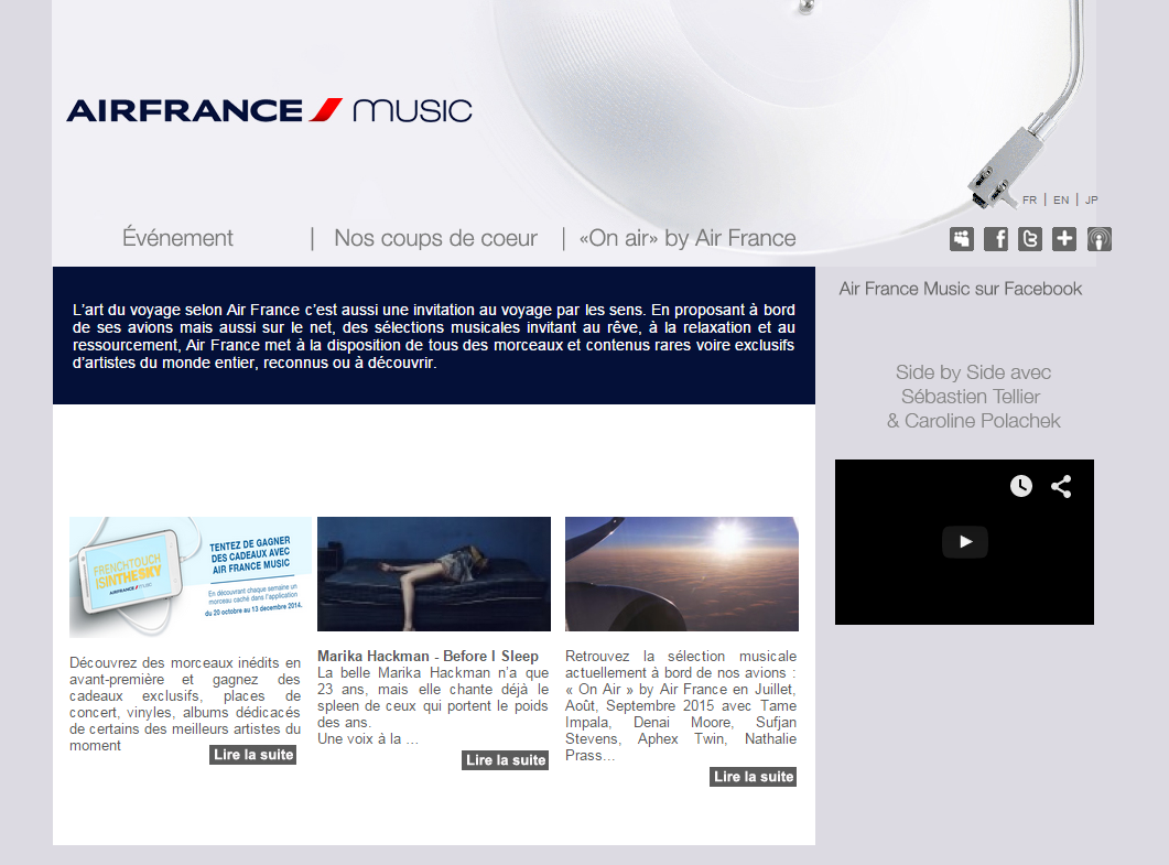 I love Air France already. But I love them even more because they play a great song on their music channel each week. It’s high quality content marketing (they pick really good songs!). And don’t worry, there is enough music for everybody out there.