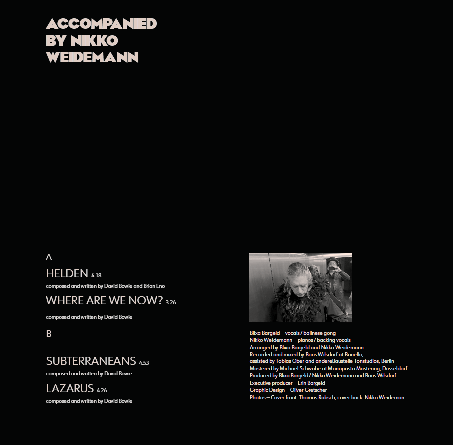 Produced by Blixa Bargeld / Nikko Weidemann and Boris Wilsdorf